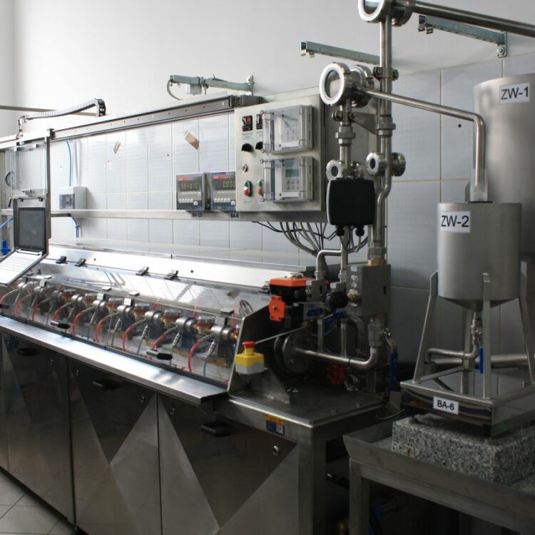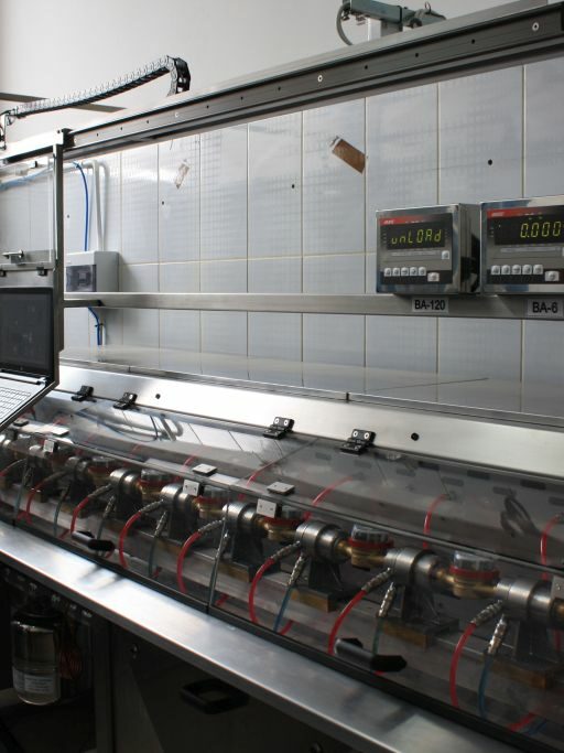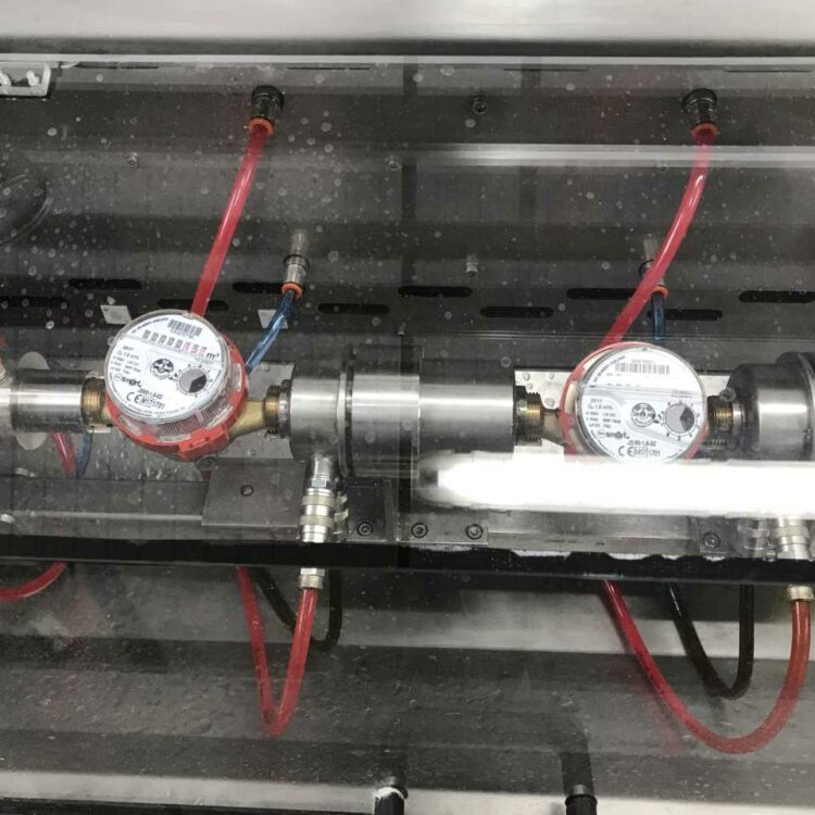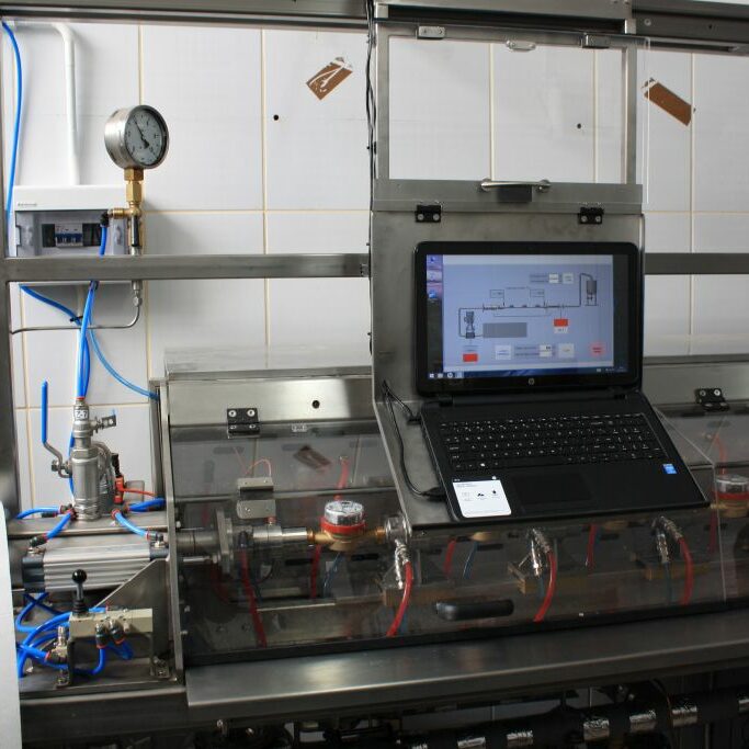 Stanowisko do legalizacji wodomierzy i przetworników przepływu wodą zimną i gorącą dla urządzeń pomiarowych od DN 15 do DN 40. Stanowisko z zatrzymanym startem-stopem.