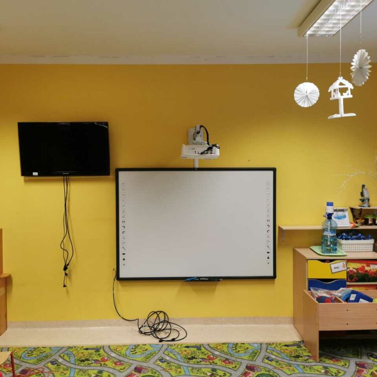 Projekt zakładał wykonanie kompletnej infrastruktury sieci LAN w budynku przedszkola. Dodatkowo projekt obejmował instalację sieci WLAN oraz instalację tablic interaktywnych.